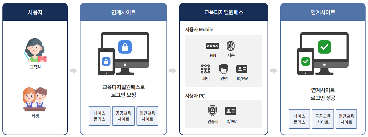 이 서비스는 교직원과 학생이 다양한 교육 사이트를 하나의 아이디로 편리하게 이용할 수 있도록 만든 통합 로그인 플랫폼입니다.