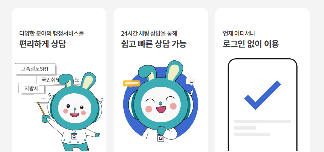 총 45개 상담 분야에 대해 제공되며, 예를 들어 이런 내용도 챗봇에게 물어볼 수 있어요: