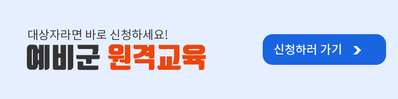 - 대학생, 직장인, 육아휴직자 등 직접적으로 집합 훈련 참석이 어려운 사유가 인정되는 예비군