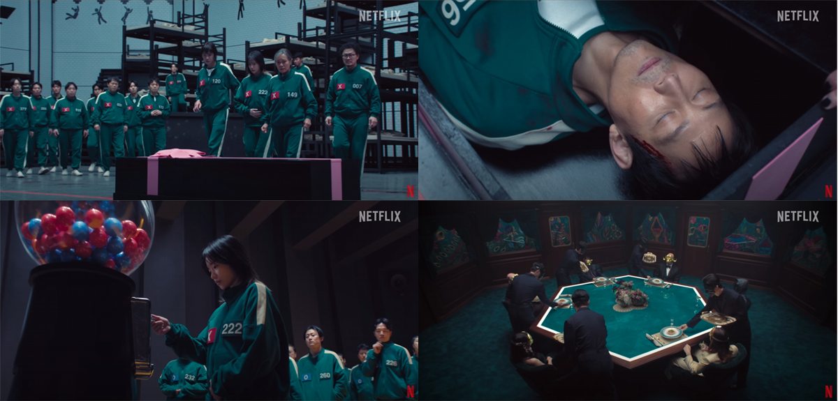 이번에 공개된 티저 영상은 핑크 가드들이 경쾌한 음악 소리와 함께 탈락자들의 시체를 넣는 관을 들고 게임 참가자들의 생활동에 들어오는 모습으로 시작하였습니다. 이로서 시즌2에서 가드 들과의 다툼이 실패로 돌아간것 처럼 보이기도 하죠.