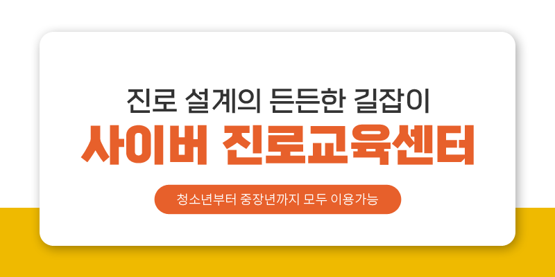 사이버진로교육센터는 청소년부터 중장년층까지, 대상별 맞춤형 콘텐츠를 제공하니 놓치지 않는것이 좋겠죠?